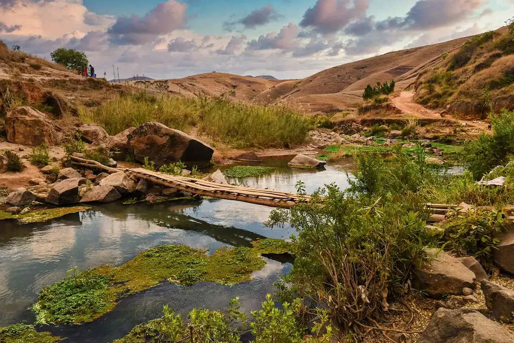 A bike ride to the Analavory geysers in Ampefy is a fascinating adventure that plunges you into the heart of stunning natural landscapes. Departing from the village of Ampefy, from the very first pedal strokes you’ll cross lush green fields and picturesque villages, following sometimes rocky but accessible paths. The road winds through dense forests and hills, with splendid views of the surrounding mountains. As you approach the geysers, the vegetation becomes sparser and the volcanic soil takes over. The air becomes fresher and a slight puff of steam begins to make itself felt, a sign that you are very close to your destination. Once there, the Analavory geysers will amaze you with their hot springs rising from the earth, creating columns of steam that rise majestically into the air. This hike not only immerses you in a unique and wild environment, but also takes you on a journey through Madagascar’s astonishing geothermal phenomena.